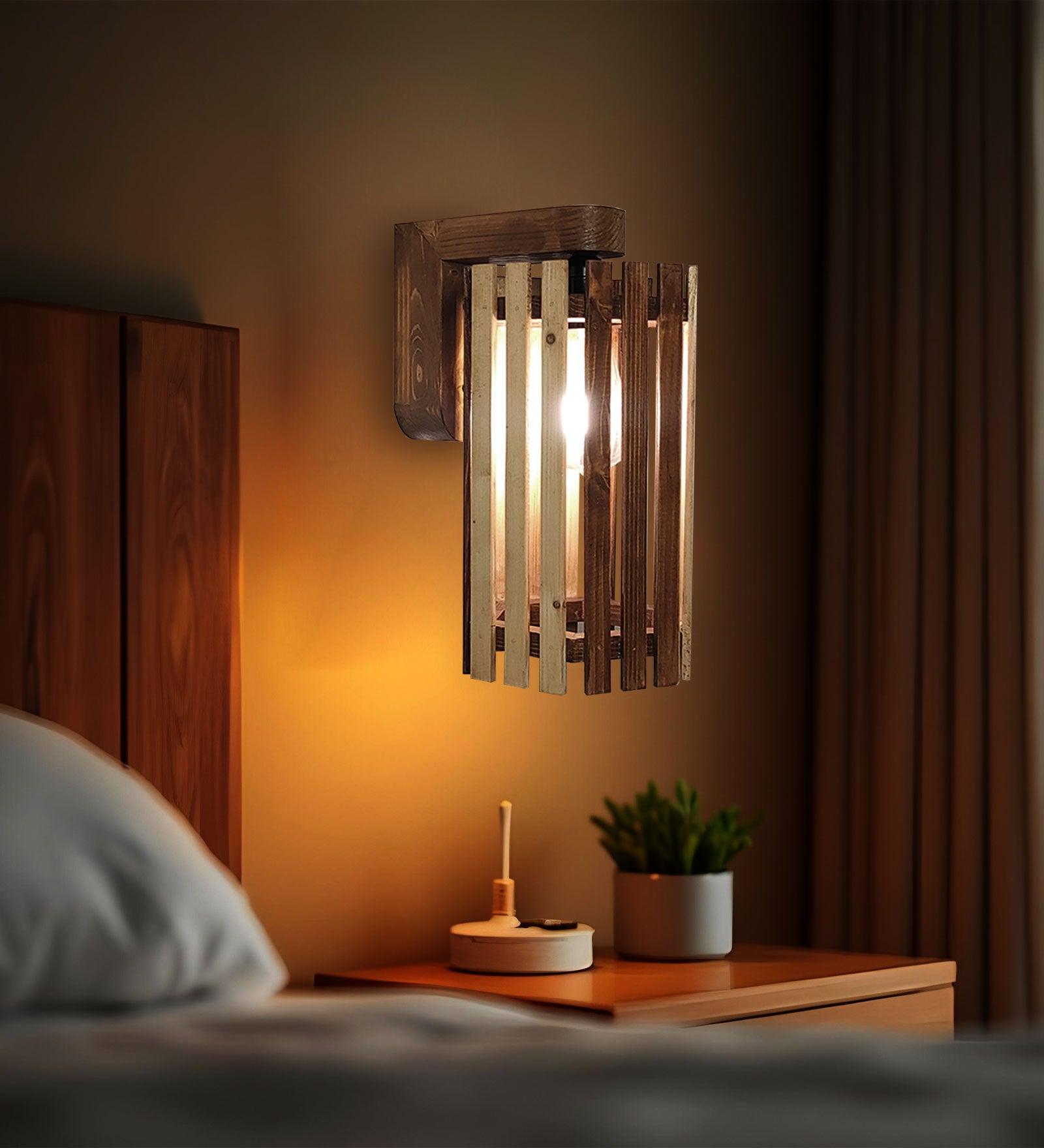 Hexa Brown Wooden Wall Light | Lamps for Home Decor
