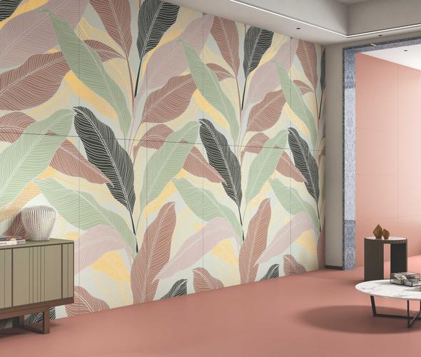 / Tropical Wall Highlighter Tile TL 05746 Jewel Rosy Glow 4 ft x 2 ft Vitrified Matte Finish – 9 mm | Suitable for Living Room, Bedroom, Bathroom & Foyer