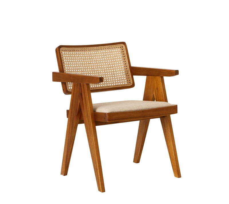 MID CENTURY WOODEN RELAXING ARM CHANDIGARH CHAIR WITH CANE WORK & SEAT CUSHION ! quantity