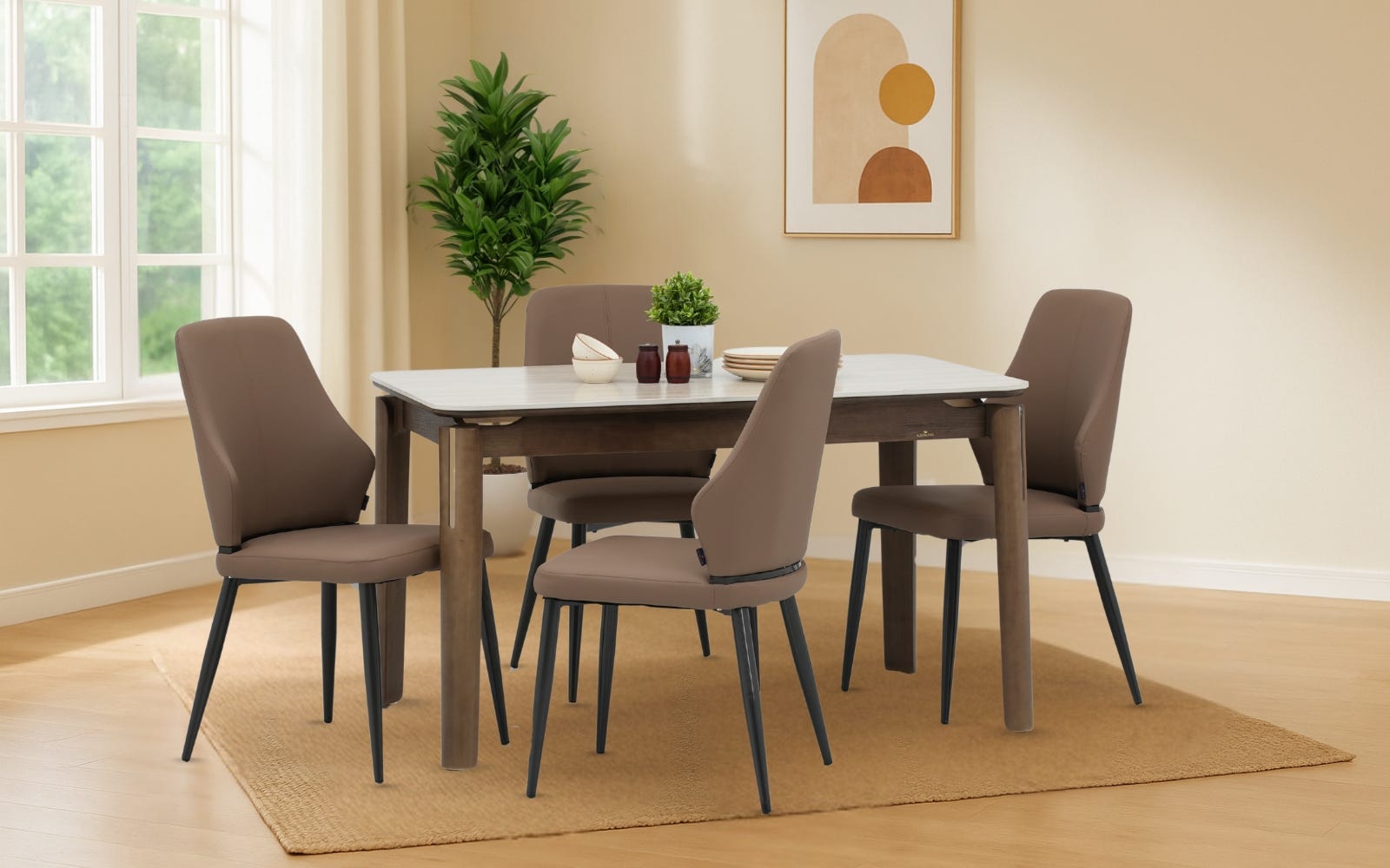 Royaloak Muar Malaysian Sintered Top 4 Seater Dining Table & Royaloak Verona Italian Dining Chair Set