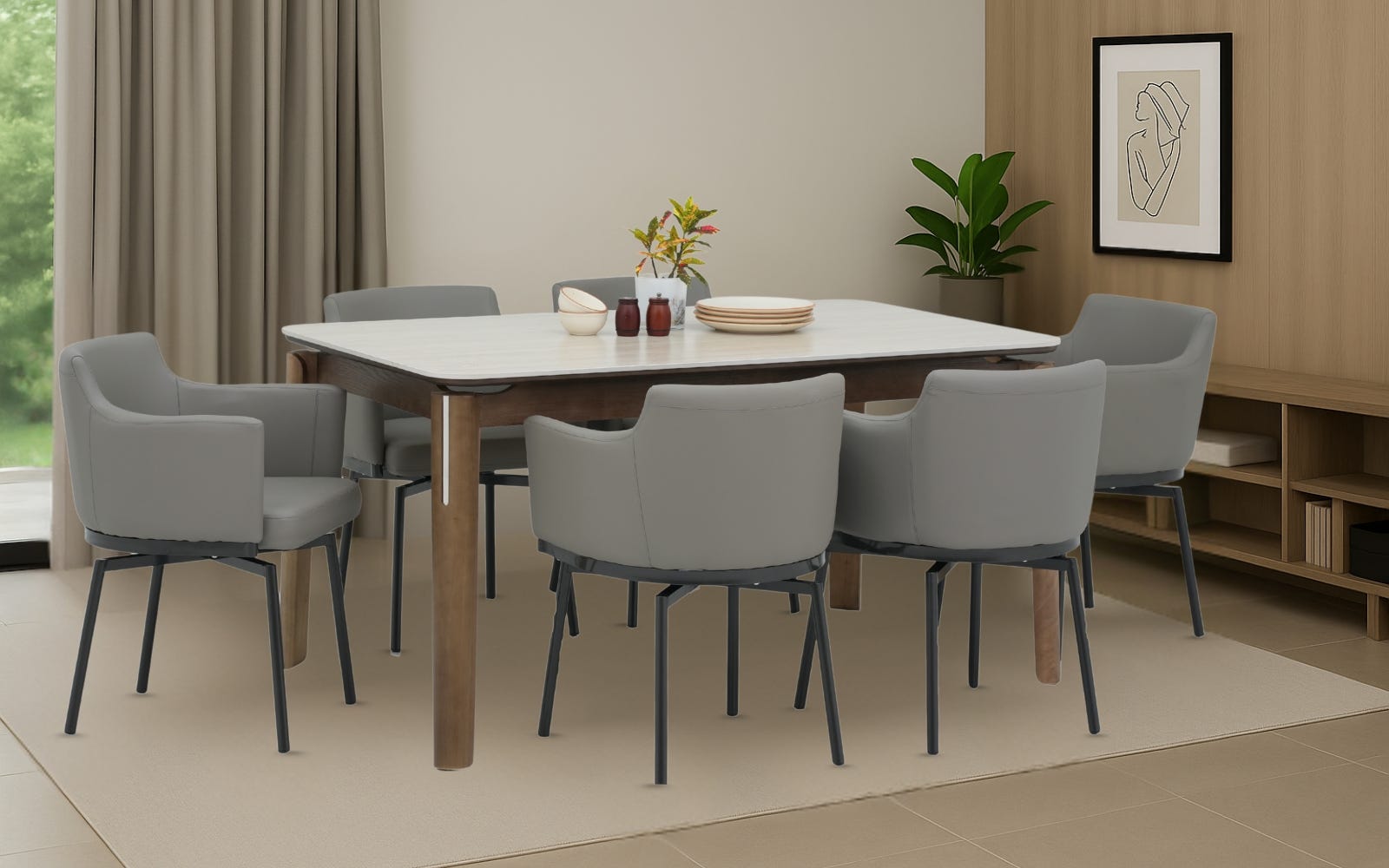 Royaloak Muar Malaysian Sintered Top 6 Seater Dining Table & Royaloak Trento Italian Dining Chair Set