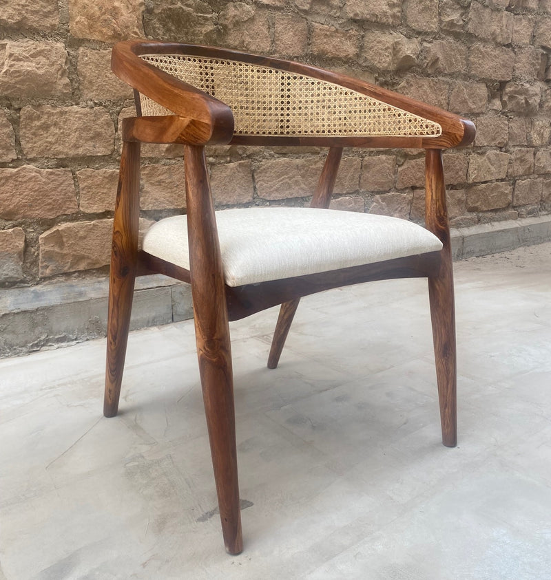 / SHEESHAM WOOD RESTAURANT CAFE ACCENT ARM CHAIR WITH RATTAN CANE WORK & SEAT CUSHION !